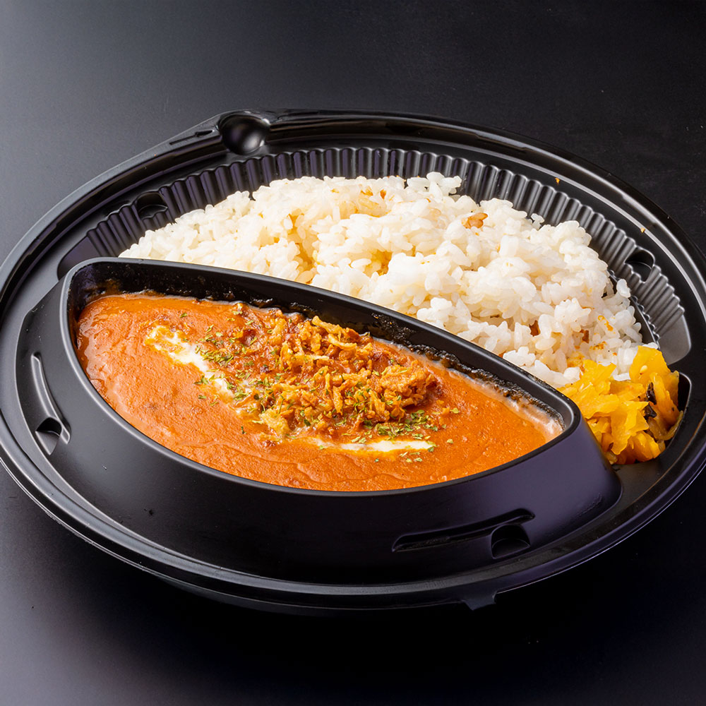 甘みと辛さのバランスが絶妙なカレー。まろやかなルーに香ばしいトッピングをのせ、ご飯と漬物で楽しむ一皿。やみつきの味!
